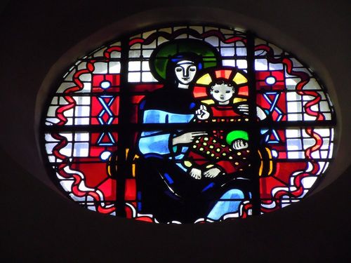 Ses volumes irréguliers racontent une construction organique, répondant aux besoins d’une communauté plus qu’à un plan d’architecte. Et l’intérieur prolonge cette impression : une nef intime, des bas-côtés étroits, un plafond lambrissé, la lumière chatoyante de vitraux modernes, la présence majestueuse de la grande toile de Suvée au fond de la nef…