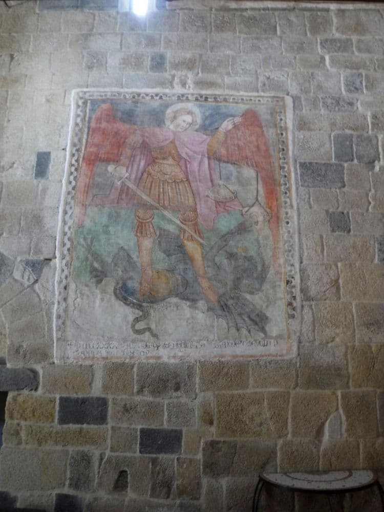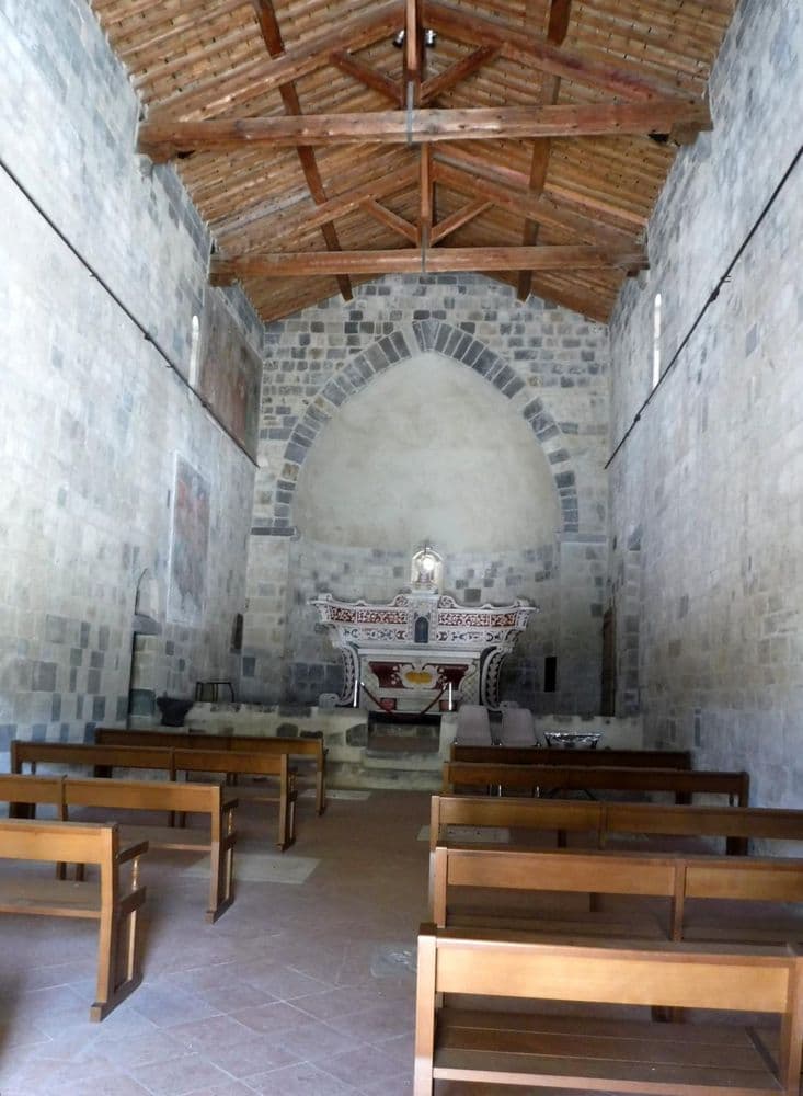 Tout comme la chapelle San Raineru à Lunghignano, elle est implantée au milieu d'un cimetière et est décorée de motifs étranges : figures humaines ou d'animaux (ours, bœuf, serpents...).