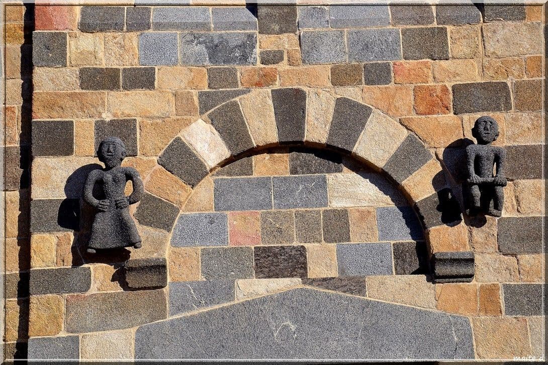 L'une d'elles se trouve au pignon, à l'aplomb de la porte d'entrée. On y voit un homme ôtant une épine de son pied. Il s'agit d'une allégorie de la connaissance, assez répandue dans les édifices romans continentaux.