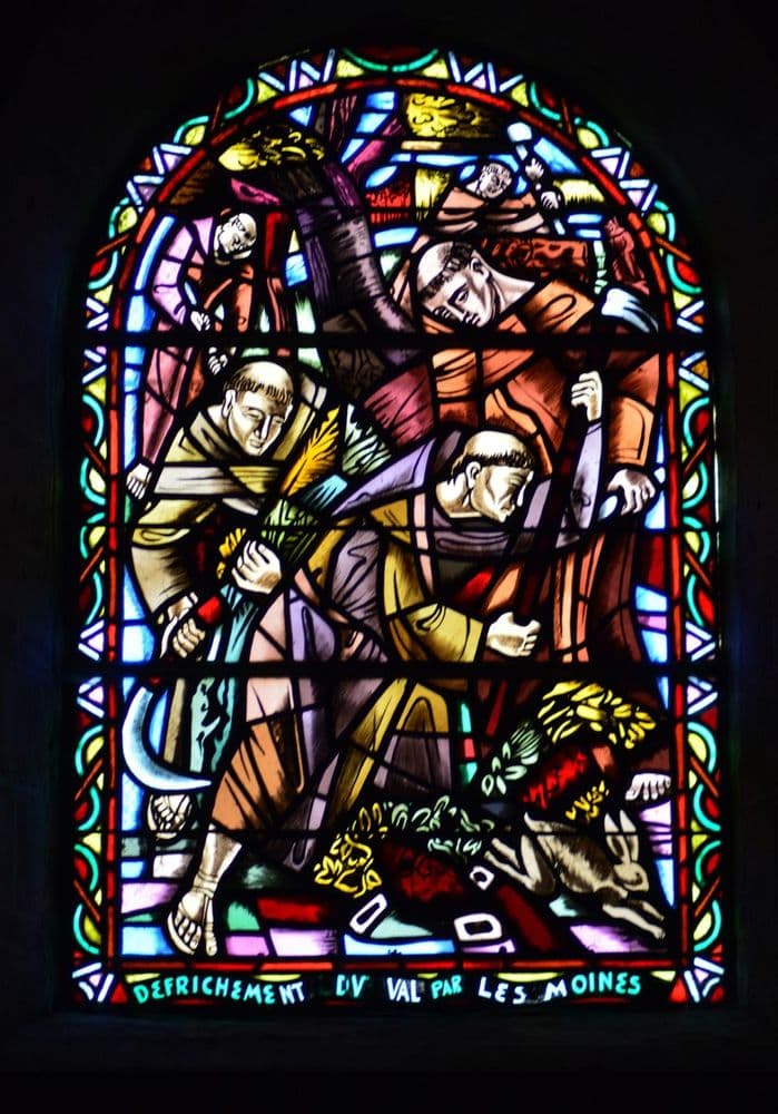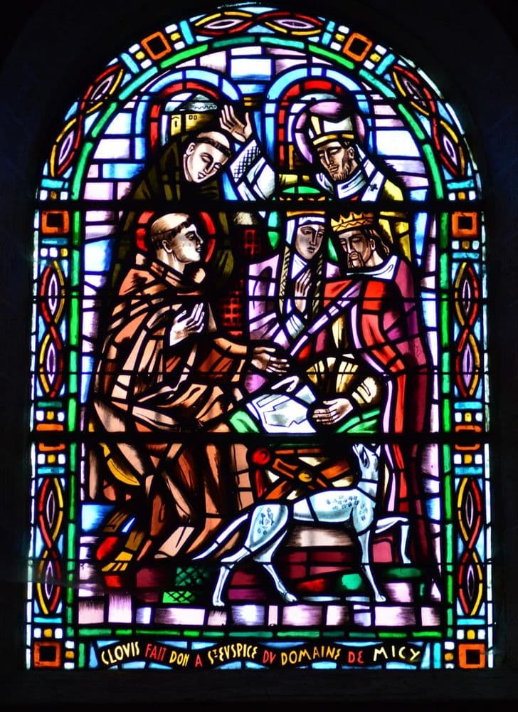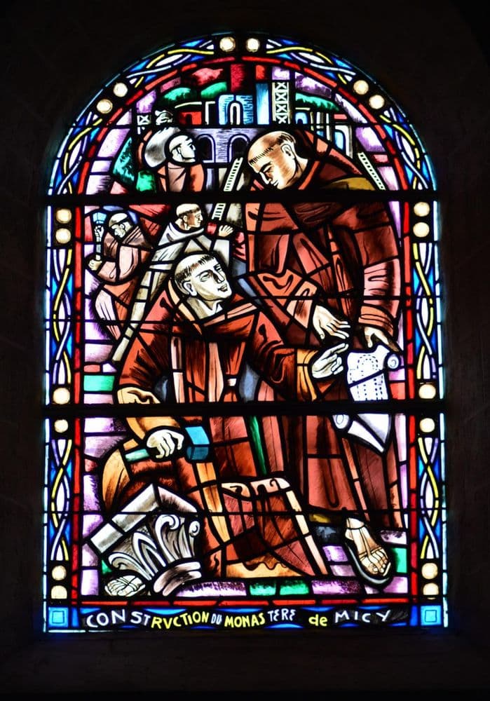 Ses vitraux modernes racontent l'histoire de l'abbaye de Micy, sur l'autre rive de la Loire, depuis sa fondation par Clovis jusqu'à la mort du dernier abbé