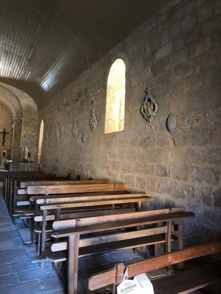 Brochures et plaque d'informations trouvées dans l'église Discussion avec les habitants sur place