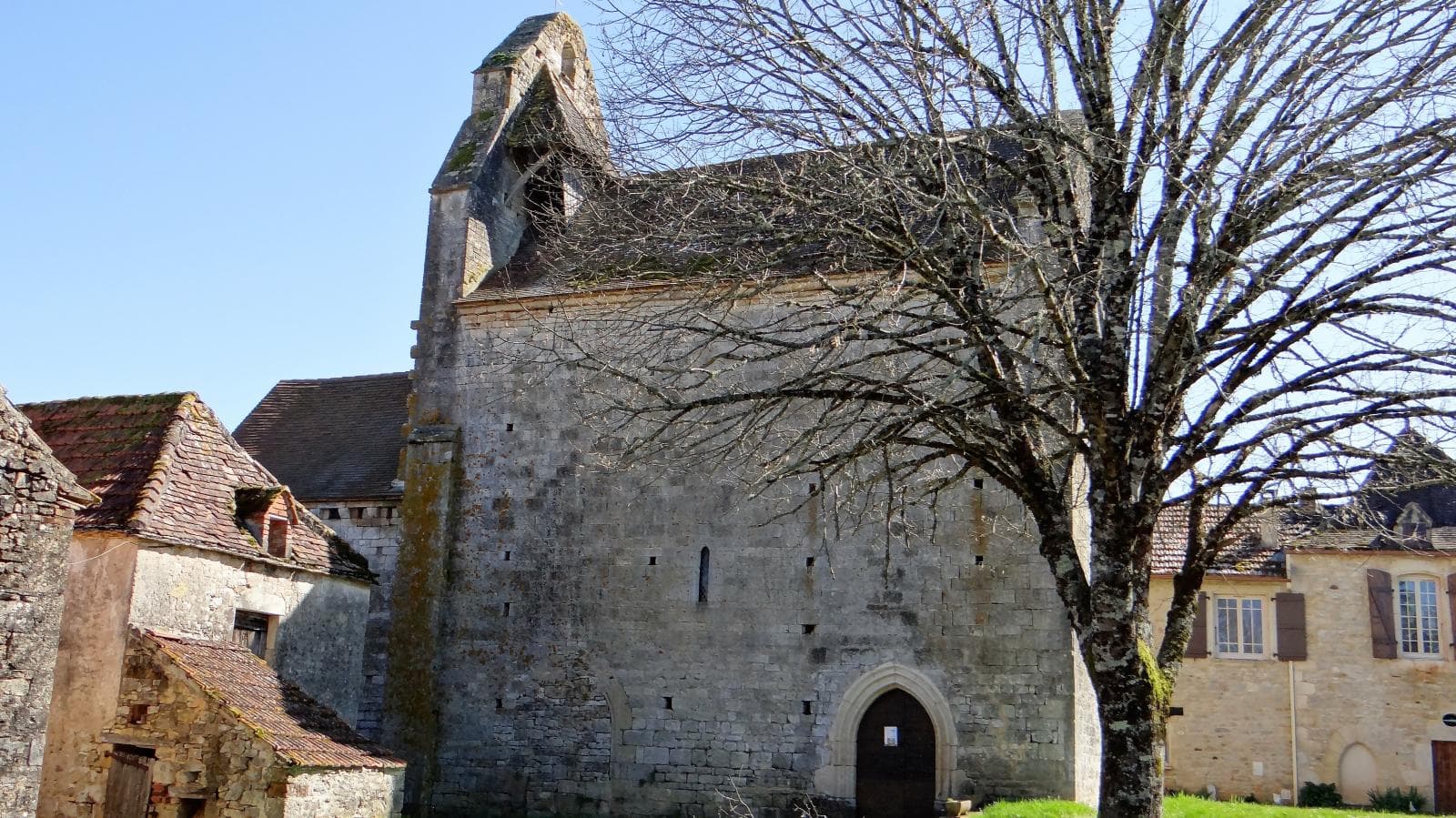 Les murs de la nef et du mur-clocher sont particulièrement élevés, soulignant la « verticalité » de l’édifice. L’appareillage de moellons calcaires bien taillés disposés en assises régulières ne concédait que quelques très petites ouvertures, les autres sont plus tardives.