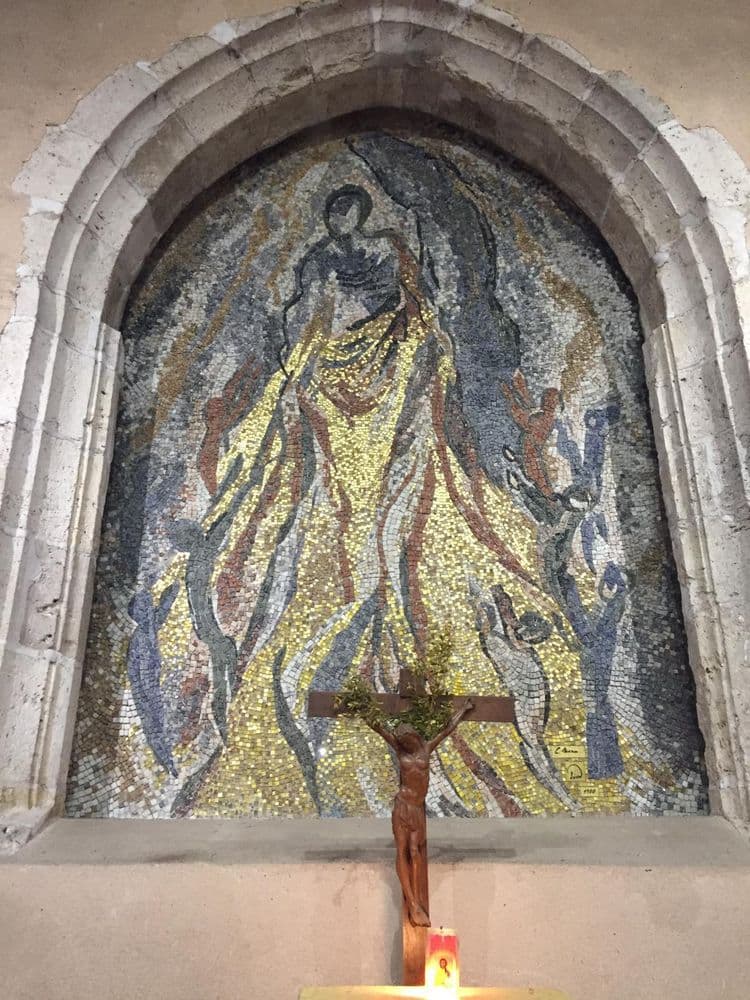 D'une architecture simple à l'exception de son clocher très typique, l'église Saint-Martin vous surprendra par la beauté de ses vitraux contemporains et la majesté de sa mosaïque du chœur, réalisée en tomettes de pays