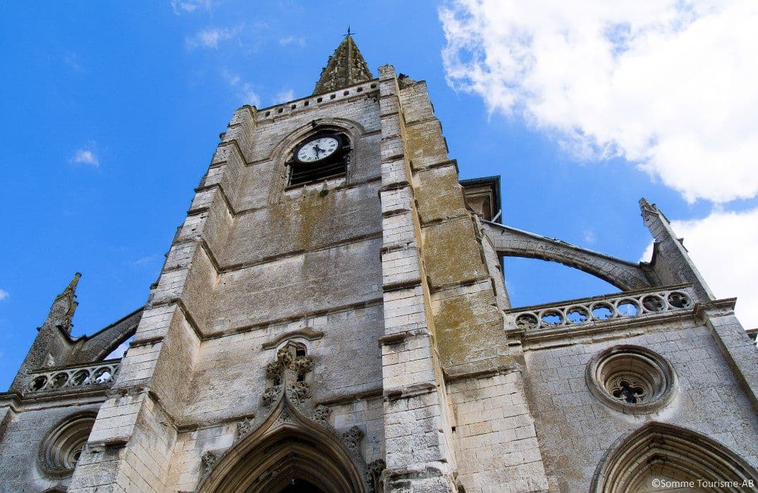 Elle a gardé son clocher de pierre du XVIème siècle... Une église que l'on voit de très loin et qui possède un magnifique instrument, un Cavaillé-coll classé Monument historique qui fait venir de grands organistes du Monde entier pour des concerts. A l'intérieur un magnifique mobilier des frères DUTHOIT. Eglise importante dans un petit village de la vallée de la Somme qui a pu reconstruire cette église grâce aux revenus de l'extraction de la tourbe.