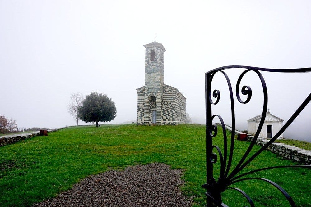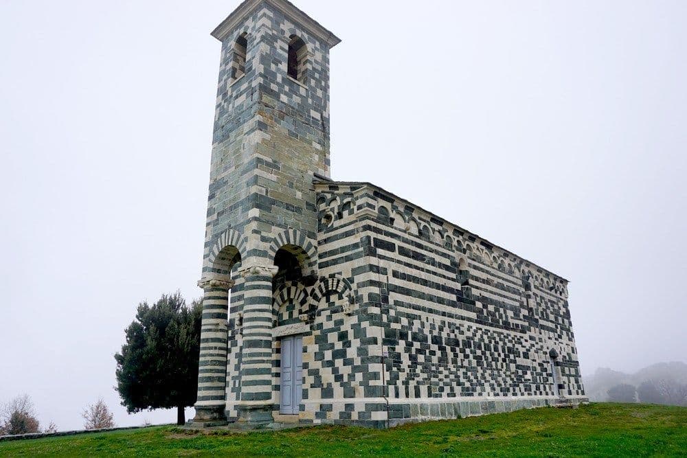Isolé à 475 mètres d'altitude, cet édifice roman de style pisan est daté du XIIème siècle (vers 1140).
