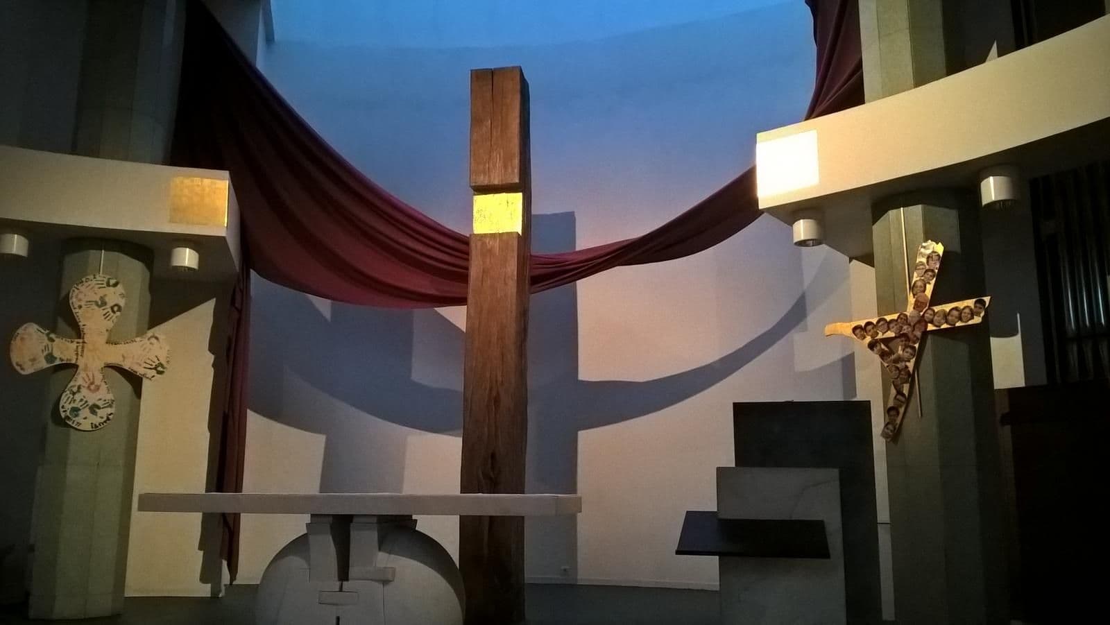 Architecture extérieure, architecture intérieure, mobilier, chaque élément a été conçu pour contribuer à illustrer l'ouverture à tous, marque de cette paroisse depuis toujours.