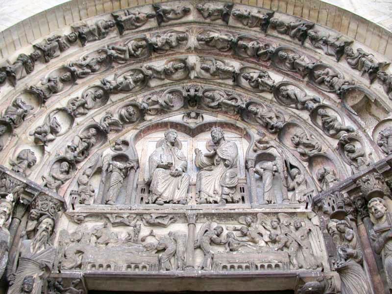 Elle appartient au premier art gothique, tout en comportant des remaniements notamment dans son transept qui date de la Renaissance. Consacrée en 1191, elle est célèbre pour son portail sculpté de renommée internationale, consacré au Couronnement de la Vierge, dont la restauration achevé en 2007 a mis au jour la polychromie.