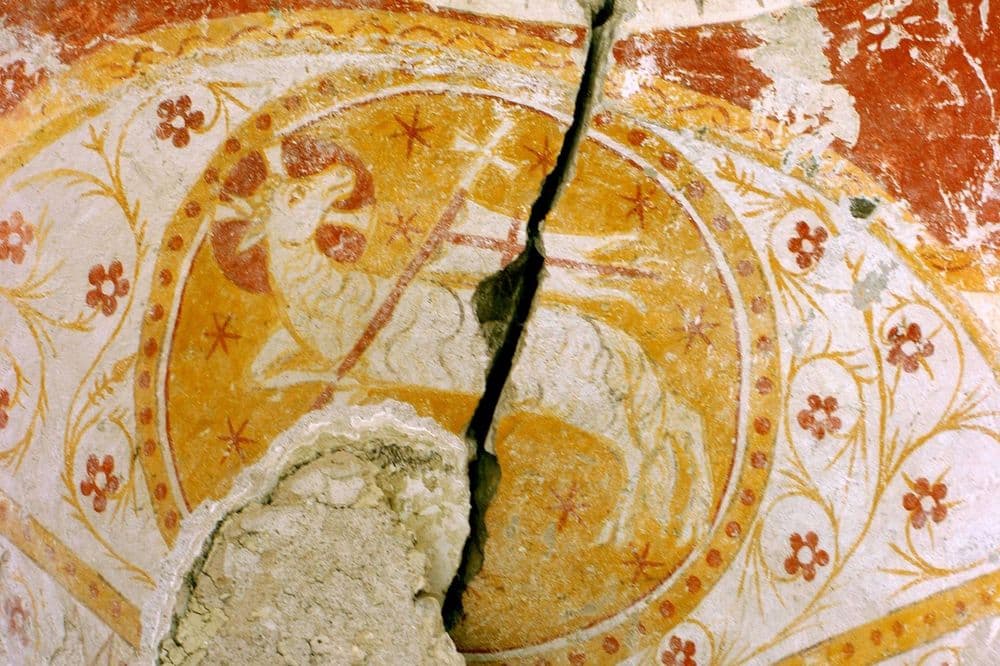 Sous son clocher à peigne, cette église romane du XIIe siècle, classée ISMH, possède une importante suite de peintures murales du XIVe au XVIe siècle dans les tons d’ocre brun et d’ocre rouge.