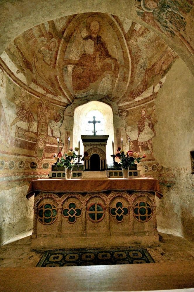 La richesse du décor ainsi que l’ampleur du programme iconographique en font le plus vaste cycle de peintures murales romanes de France, après Saint-Savin-sur-Gartempe.