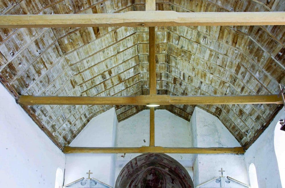 L’une des plus modestes églises du diocèse, mais exceptionnelle pour ses  peintures murales du XIIe siècle Christ en majesté, Annonciation, Visitation, Nativité, apôtres, chevaliers...