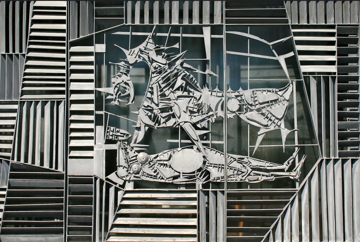 Toutes les façades vitrées ouvrent largement l'église vers l'extérieur. Elles sont ornées de grilles réalisées par le sculpteur Maurice Calka, illustrant l'Apocalypse de saint Jean. L'artiste a su tirer parti de l'acier : il a donné à ce matériau tantôt des formes aux pointes aiguës, tantôt des formes douces et rondes, pour représenter les cavaliers de l'Apocalypse ou la Jérusalem céleste.