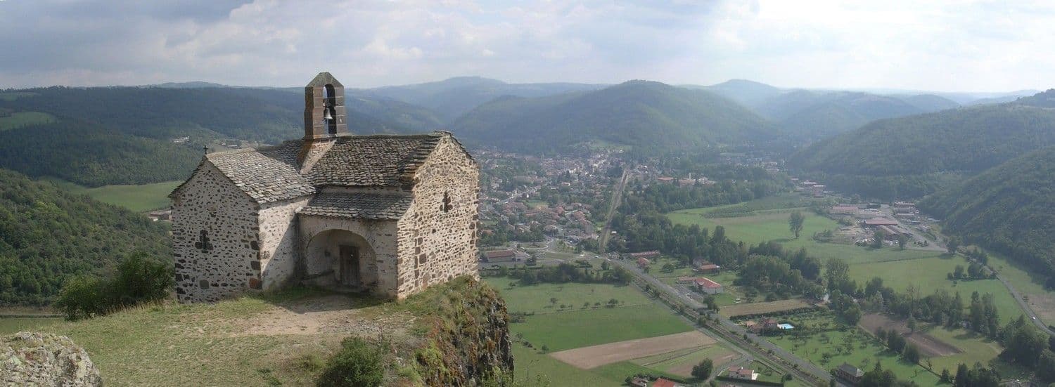 A la pointe Sud-est du plateau de Challet cet édifice roman du XIIème siècle est érigé au sommet d'un à-pic de rocher basaltique.