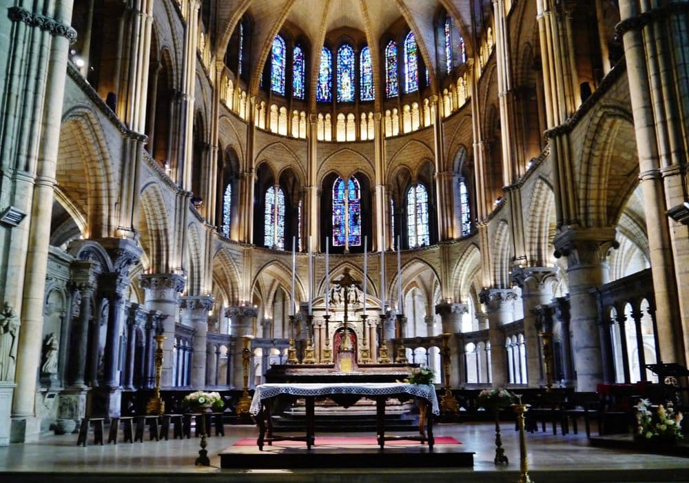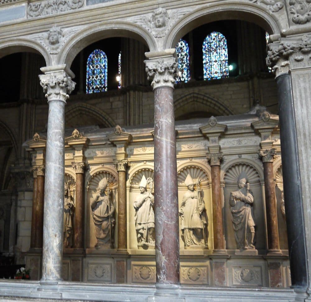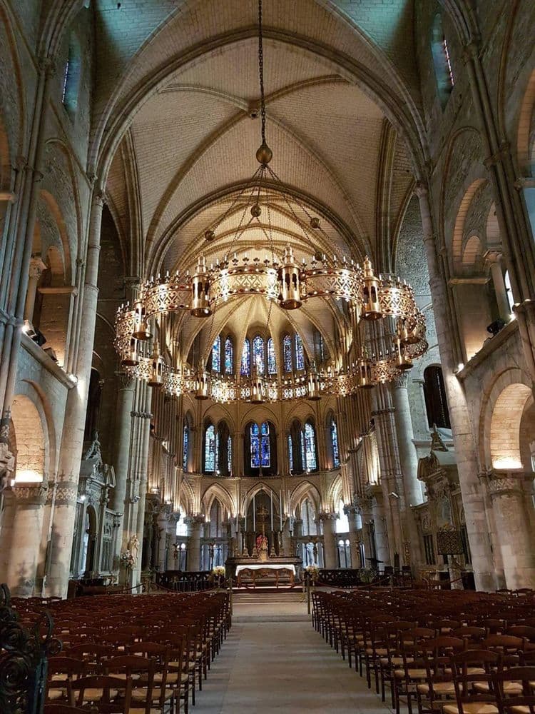 Son tombeau (1847) occupe le centre du chœur. La sobre nef romane et le chœur gothique (fin du XIIe siècle) à quatre étages constituent un ensemble impressionnant de légèreté et d'harmonie.