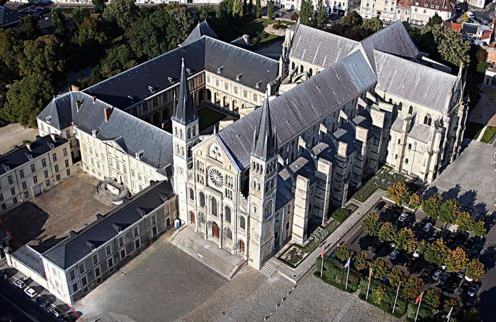 Elle a été construite au XIe siècle pour abriter la sainte ampoule ainsi que les reliques de saint Remi, l'évêque qui baptisa Clovis en 498.