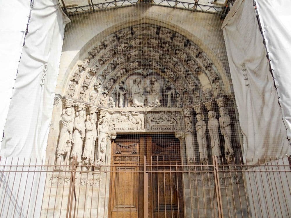 Elle appartient au premier art gothique, tout en comportant des remaniements notamment dans son transept qui date de la Renaissance. Consacrée en 1191, elle est célèbre pour son portail sculpté de renommée internationale, consacré au Couronnement de la Vierge, dont la restauration achevé en 2007 a mis au jour la polychromie.