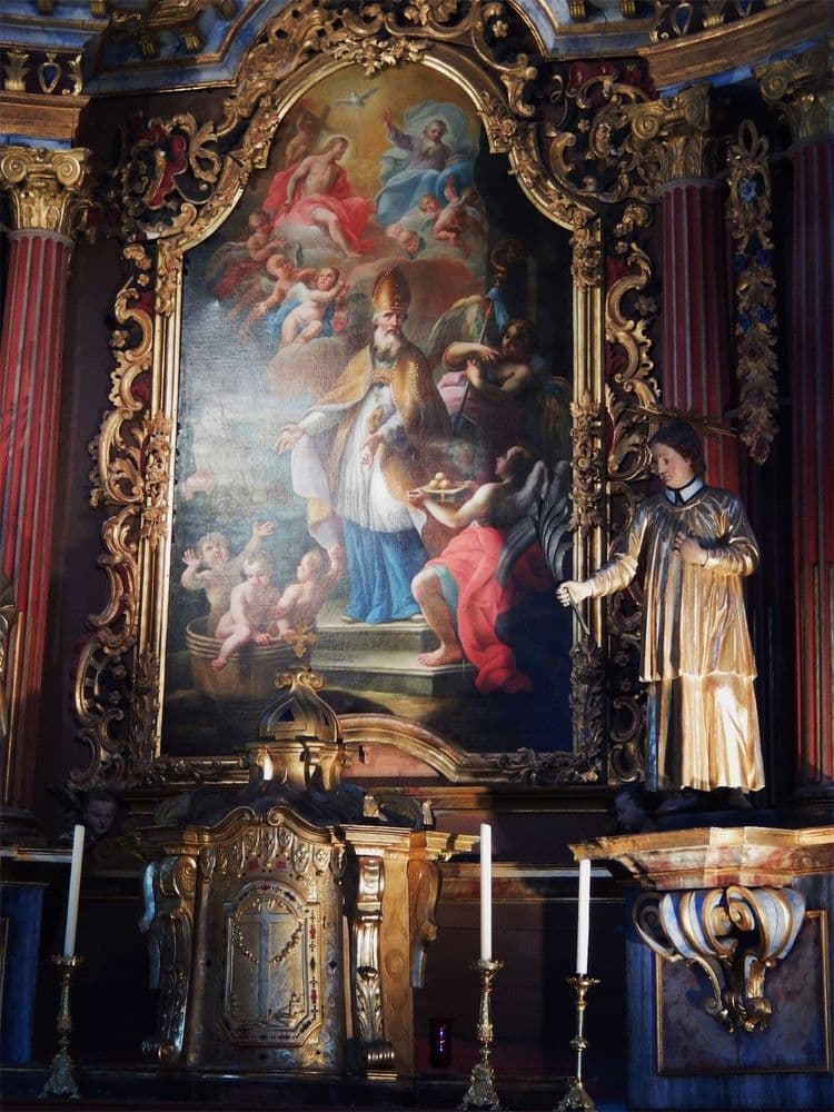 XVIIIe siècle Elle est l’un des joyaux de l’art baroque alpin, caractérisé par un extérieur sobre et un intérieur éclatant de couleurs et reconnu pour le « bleu de Saint-Nicolas » ornant les voûtes peintes au XIXe siècle.